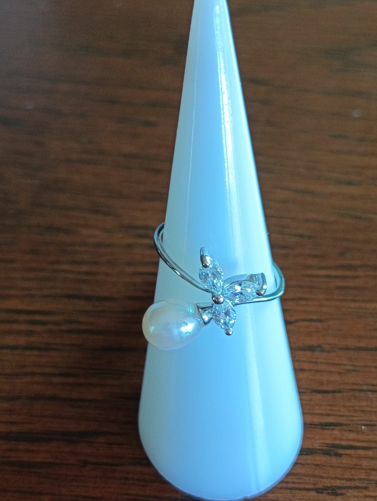 LINDO ANILLO DE PERLA CULTIVADA CON UNA FLOR DE PIEDRA