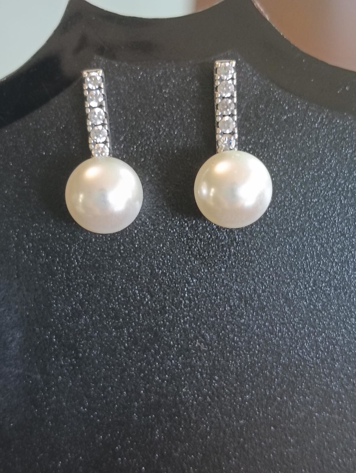 LINDOS ARETES DE PERLA CULTIVADA TIPO BOTON COLOR BLANCACON CIRCONIAS