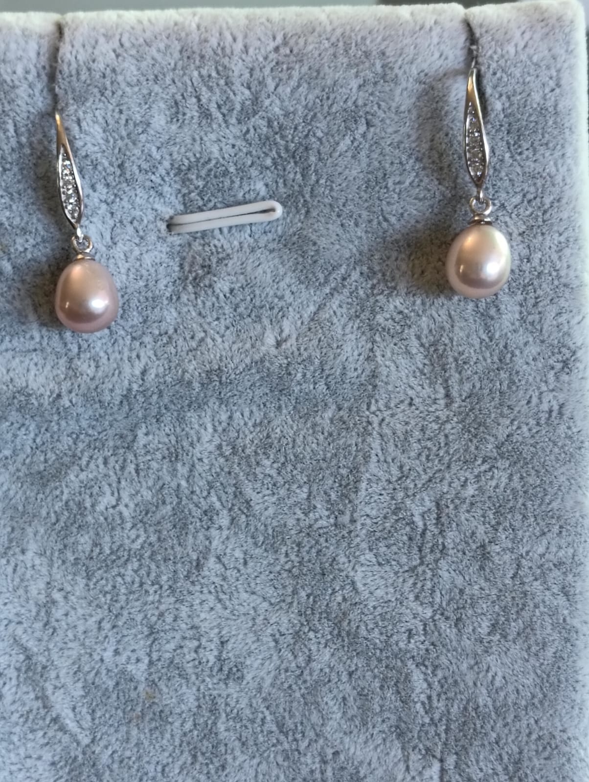 ARETES DE PERLA TIPO RICE COLOR LAVANDER