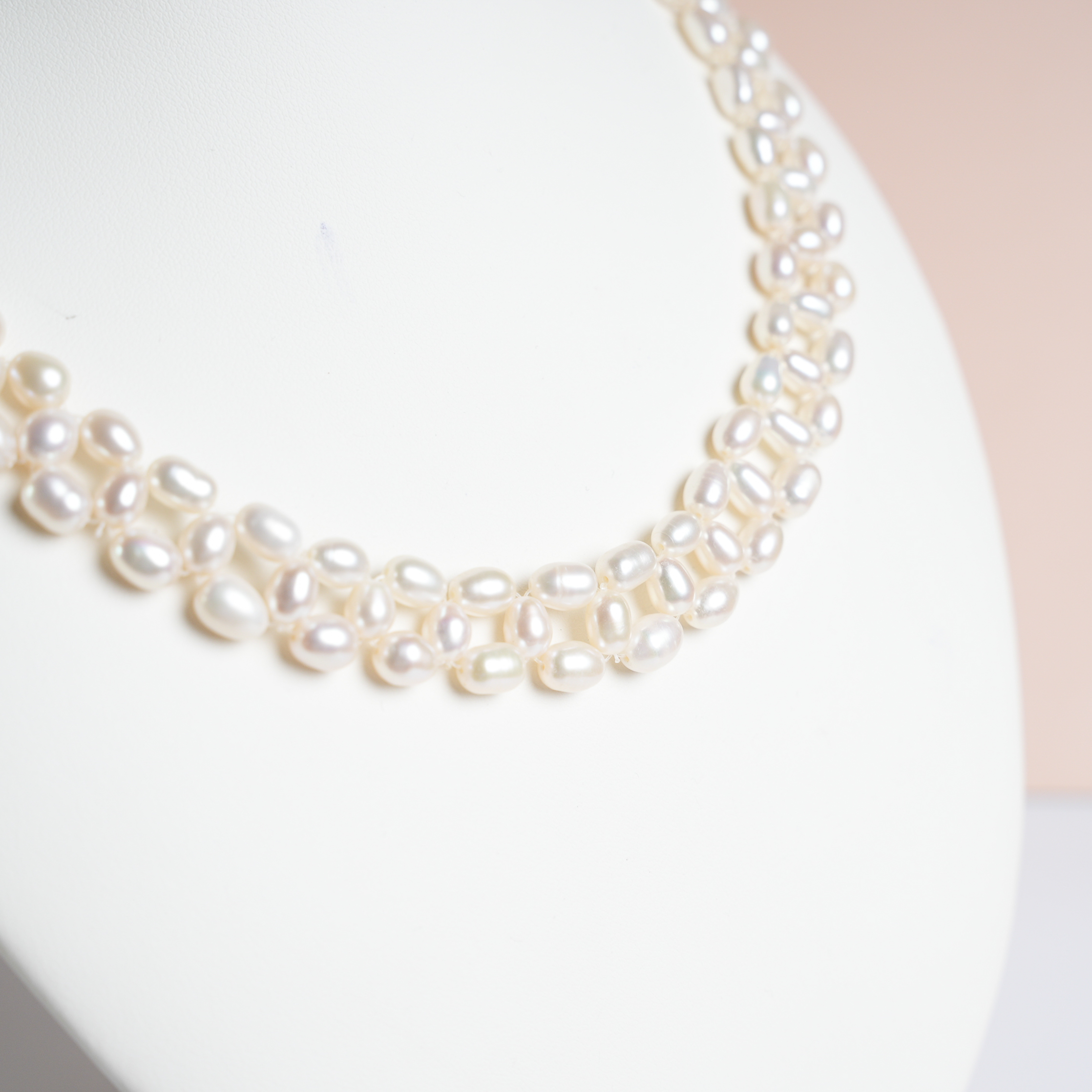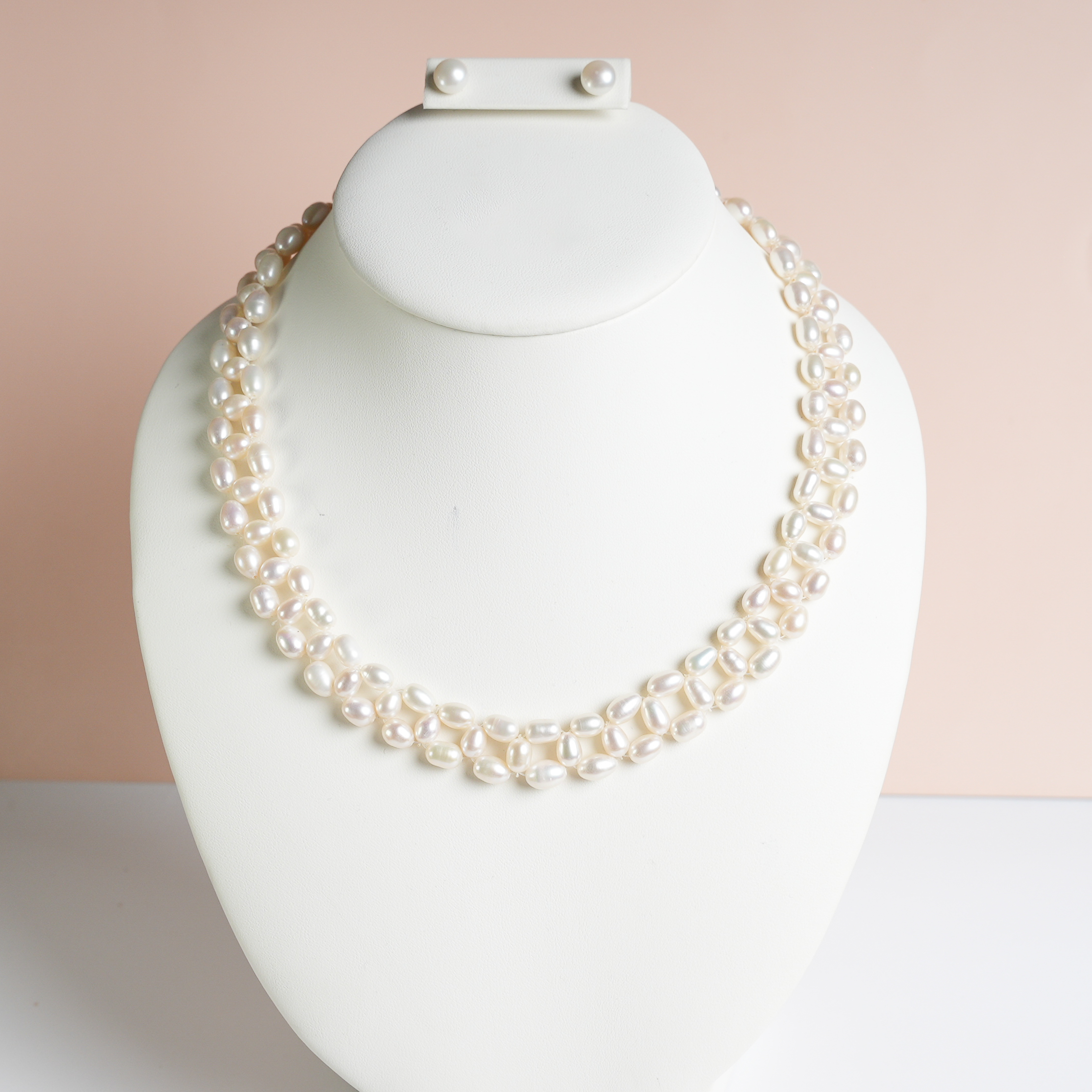 LINDO COLLAR Y ARETE DE PERLA TIPO RICE COLOR BLANCA TAMAÑO 8-9MM DE DOBLE LINEA
